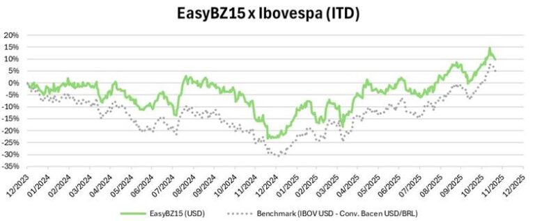 O EasyBZ 15 é composto exclusivamente por ações e/ou recibos (ADR) de empresas com sede ou com expressiva atuação no Brasil, negociados no exterior, que tenham mais de 60 dias de negociação e pelo menos 85% de dias negociados na data de reavaliação da carteira do índice, qual seja a data de publicação do último PIB, e que não estejam em recuperação judicial ou extrajudicial, regime especial de administração temporária, intervenção, ou negociadas em qualquer outra situação especial de listagem.